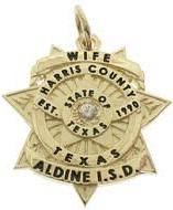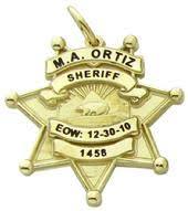 Custom police and fire badge jewelry pendants and charms in sterling silver, 10k, 14k, or 18k yellow or white gold, some with diamonds.